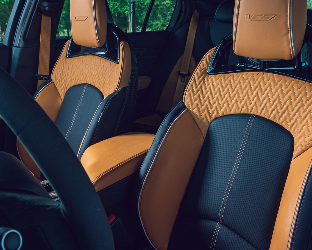 Inside, the Blackwing transcends the luxury found in the standard CT5. Both trims boast opulent materials and detailed craftsmanship, but the Blackwing takes it up a notch with exclusive sueded-microfibre accents and optional carbon fibre seat backs—a true throne for the discerning driver.