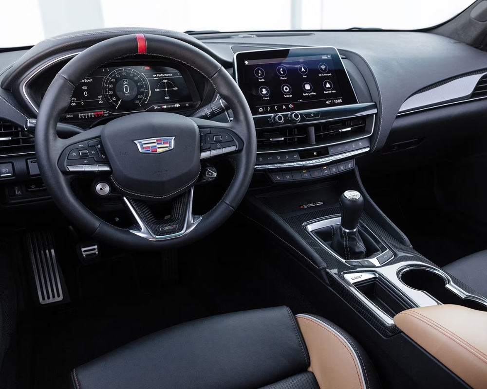 Diverging sharply from the base CT5's 10-speed automatic, the 2024 CT5-V Blackwing offers a visceral 6-speed manual transmission— a nod to true automotive enthusiasts. An alternative 10-speed automatic is available, offering a balance between aggressive engagement and refined smoothness.