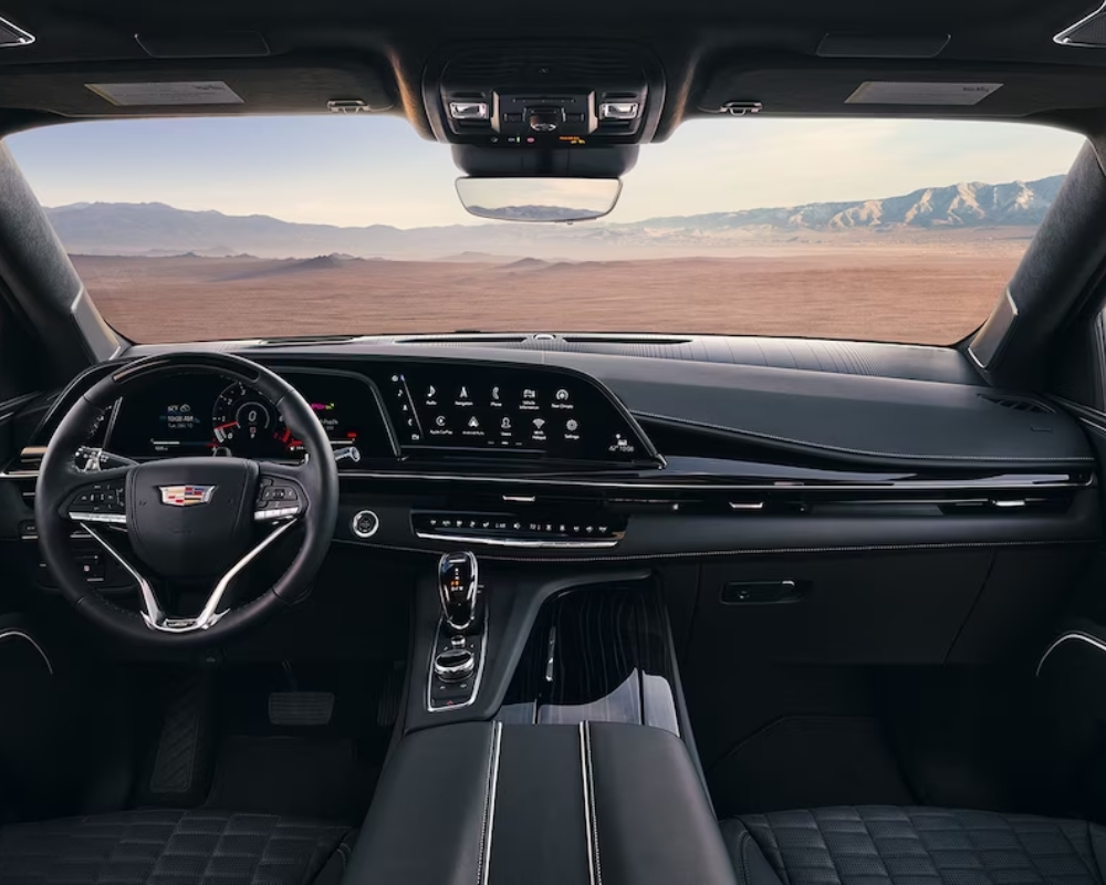 Immerse yourself in innovation with the curved OLED display spanning 38 inches diagonally, complemented by the AKG Studio Reference 36-speaker audio system. Technology enthusiasts will appreciate features like augmented reality navigation and the Super Cruise hands-free driving assistance, enhancing every journey with state-of-the-art convenience. The integration of these advanced technology features in the Cadillac Escalade V-series 2024 sets new standards for in-car entertainment and connectivity.