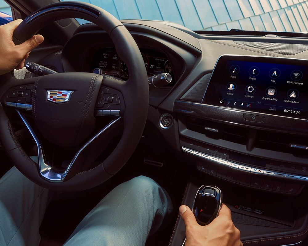 The CT4-V also introduces an available 14-speaker AKG premium audio system, a significant upgrade over the basic sound system in the base model. For daily commutes and longer road trips, built-in navigation with real-time traffic is another available feature that drivers will appreciate.