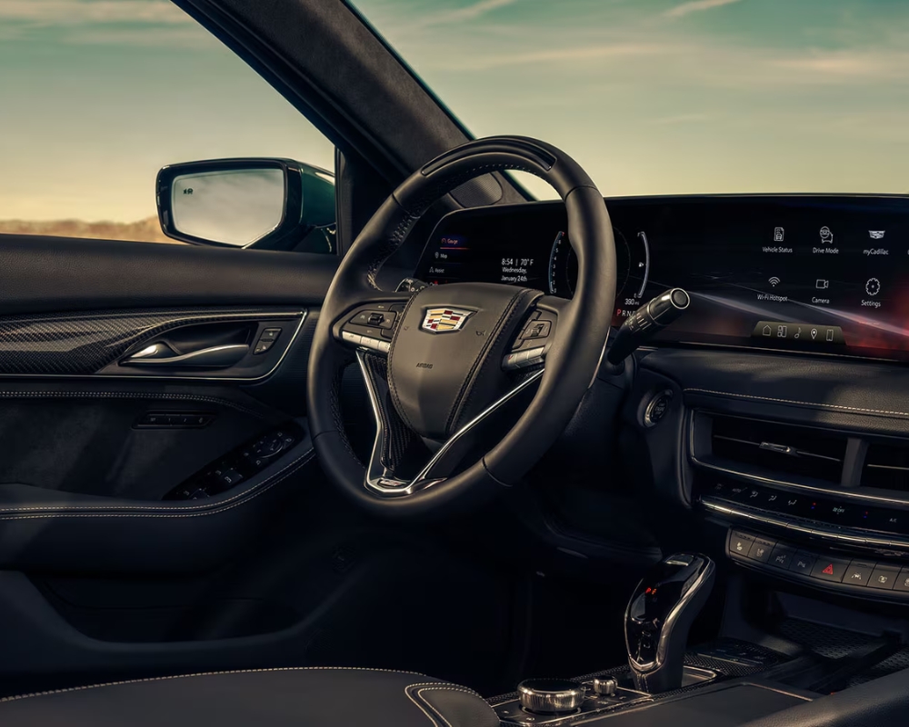 The base CT5 does not offer the 3.0 litre twin turbo V6 that lives in the V. It does not add Magnetic Ride Control or the electronic limited slip differential. Brembo front brakes and the full V aero package do not come on the base model. The performance steering wheel with V controls is not found there either. The broad mix of display, audio, and available Super Cruise features is more complete in the CT5-V.
